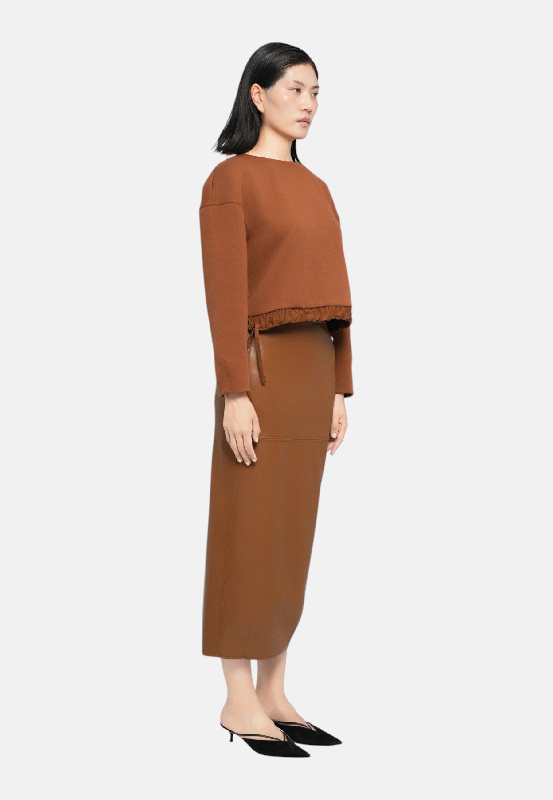 • Scollo a girocollo ed elastico in vita