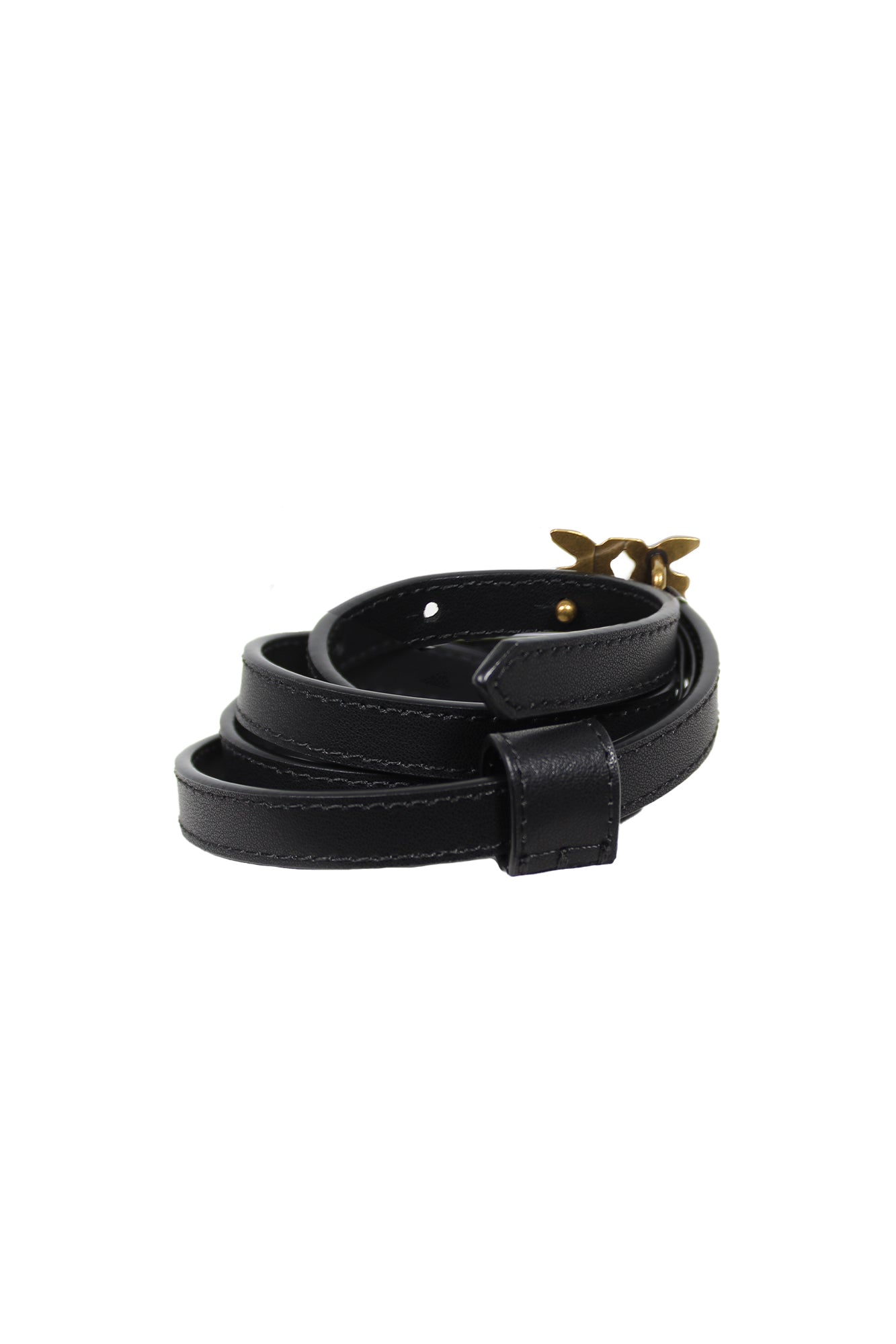 Cintura sottile da donna in pelle con fibbia logata e chiusura a bloccaggio.