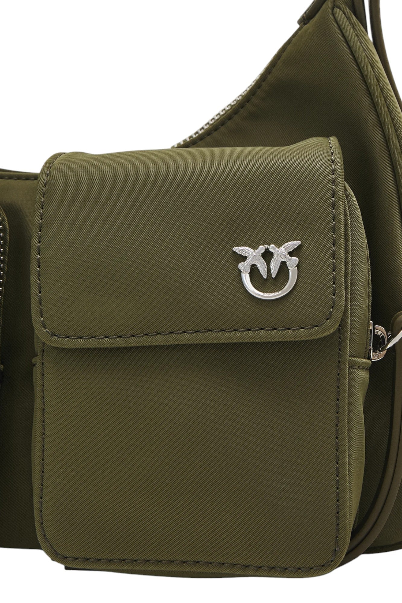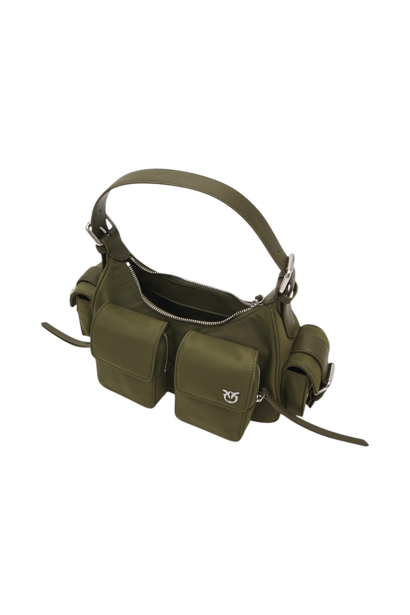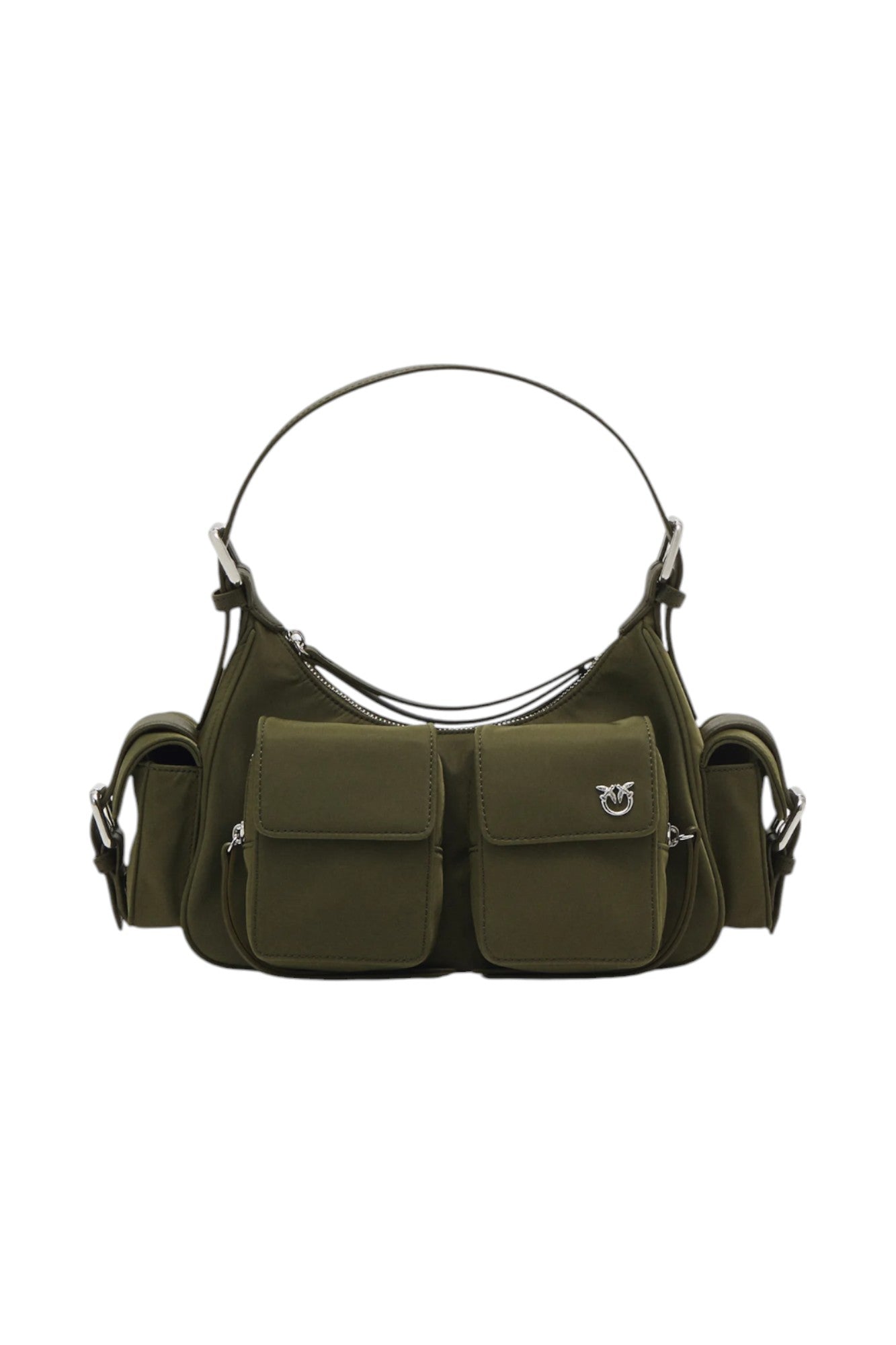 Borsa da donna in ecopelle con logo e doppia tasca frontale, tracolla regolabile con spallina, tasche laterali e chiusura centrale con zip ed interni foderati con la presenza di 1 tasca multiuso.